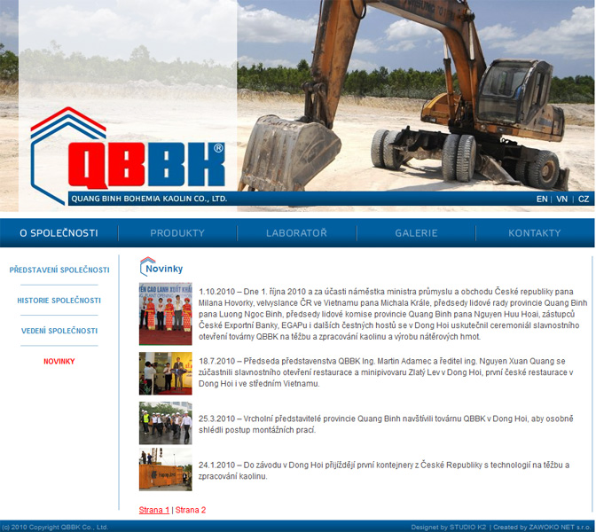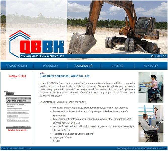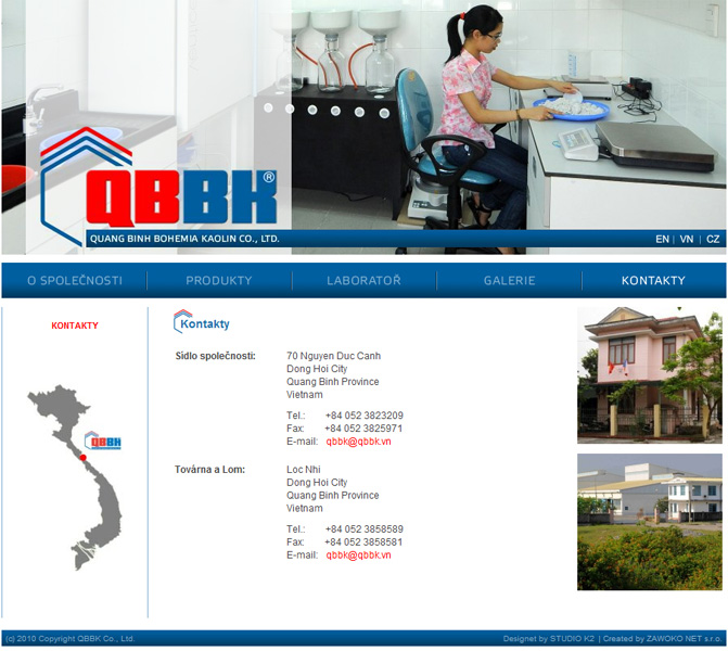 Webové stránky QBBK.vn byly vytvořeny pro prezentaci společnosti uang Binh Bohemia Kaolin Company, Ltd. (zkratka QBBK). Stránky byly vytvořeny ve třech jazykových mutacích (CZ, EN, VN).